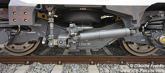 Die Triebdrehgestelle sind von Siemens und eine Weiterentwicklung aus der SF 500-Familie. Sie sind auch wieder mit einer Drehgestellüberwachung mittels Sensoren ausgestattet. Nähere Informationen dazu erhalten Sie in der 407-Baureihenbeschreibung hier auf der Homepage.