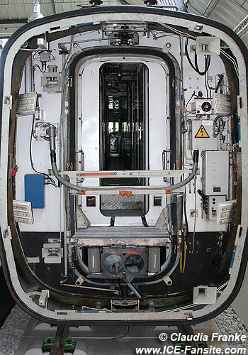 Beim ICE V erprobte man noch eine sehr komplizierte Übergangstechnik. Gummi-Rohrbälge konnten zugunsten der Aerodynamik sowie der Lärm- und Kälteabweisung nicht verwendet werden. Die Firma LHB fanden schließlich eine Lösung. Das Prinzip des Doppelkugelgelenks, bei dem die Wagenenden die Gelenkköpfe, das aus GFK hergestellte und teilbare Übergangselement die Kugelpfannen bildeten. Dieses Übergangselement kann im Bereich der Kupplungsebene getrennt werden. Für die Dichtung kamen kräftige Gummidichtungen zum Einsatz.